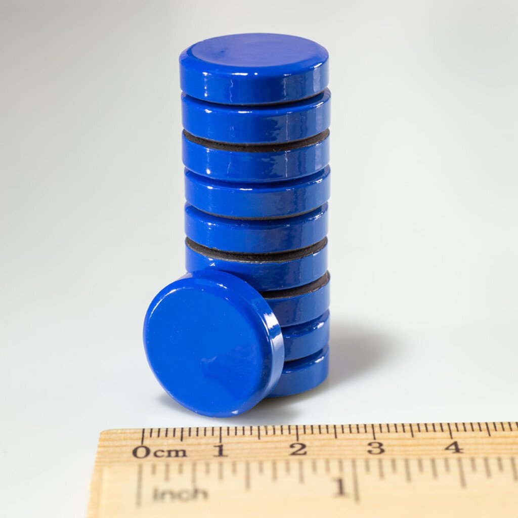 Pakowane okrągłe kolorowe magnesy śr.20x5 – niebieskie
